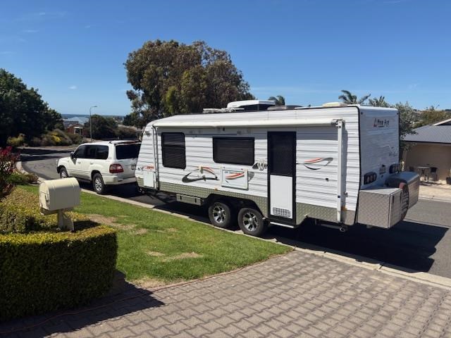 New Age Big Red 19 has dual axle suspension upgraded and rated for offroad with height adjustable air bag suspension linked to twin shock absorbers. Additional under-chassis storage boxes, rear storage and Generator box with slide out floor. Includes tools, camping gear, cutlery and pristine linen/bedding. Upgraded queen mattress, awning and rafters, spacious interior, ensuite, modern kitchen, and all cupboards with non-slip mats. Solar panels, new Dometic climate control air conditioner. Has gas slide out barbecue, 3 way fridge, gas/electric hot water, 2 x 120l water tanks. Fully rigged for towing with Dexter sway control incorporated. Regularly serviced, meticulously maintained and ready to travel anywhere. 2.4Kw inverter generator could be included if required.