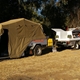 Trayback ute with white storage boxes attached to the tray. We tow a kimberly camper