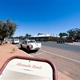 tilpa. Nivara ute towing a small blacktop pop up caravan
