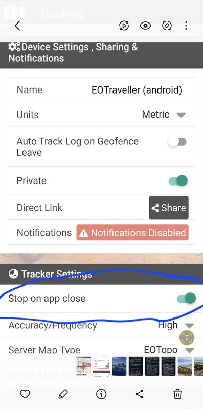 The app teack log is set as above on close. I pothole and viewed the log waiting for any updates to occur before turning off an thrn saved log.