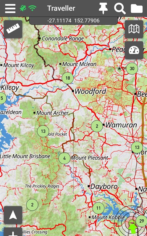 Kilcoy to Warner Queensland over Mt Mee. Track logging cut out just before Dayboro.
