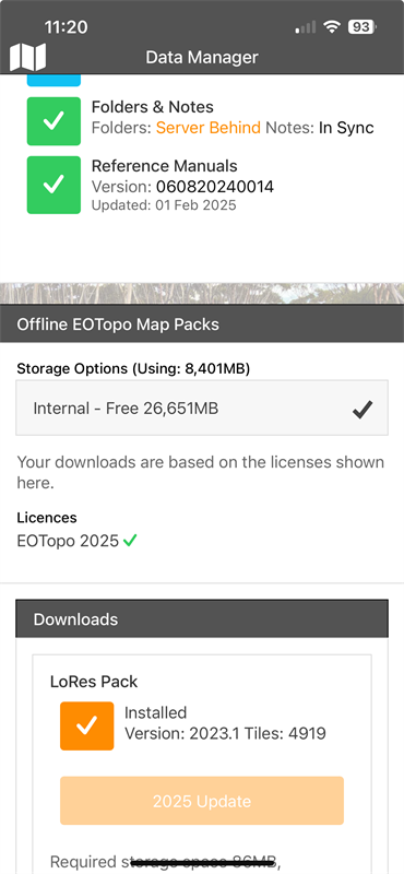 I have bought and installed the 2025 map set on my iPad and now want to install them on my iPhone 13 Pro which currently has the 2023 map set but the install buttons are greyed out. I’m on the same home network with both devices.