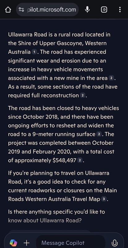 Anyway, moving on, can I ask where you obtained that road report from please? I've
