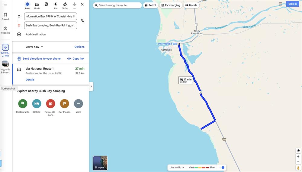 Carnarvon) and 9km is the dirt road from the highway turn-off to Bush Bay