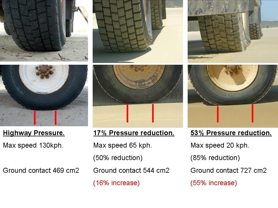 2) Yes, regardless of ambient temperature, tyre pressures (front to rear) should be set to suit standing loading of each axle.