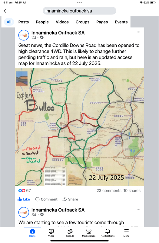 Innamincka, the causeway has been checked out by the engineers on open and extensive track damage for around 5 kilometres with some wash always up to 2 metres deep.
