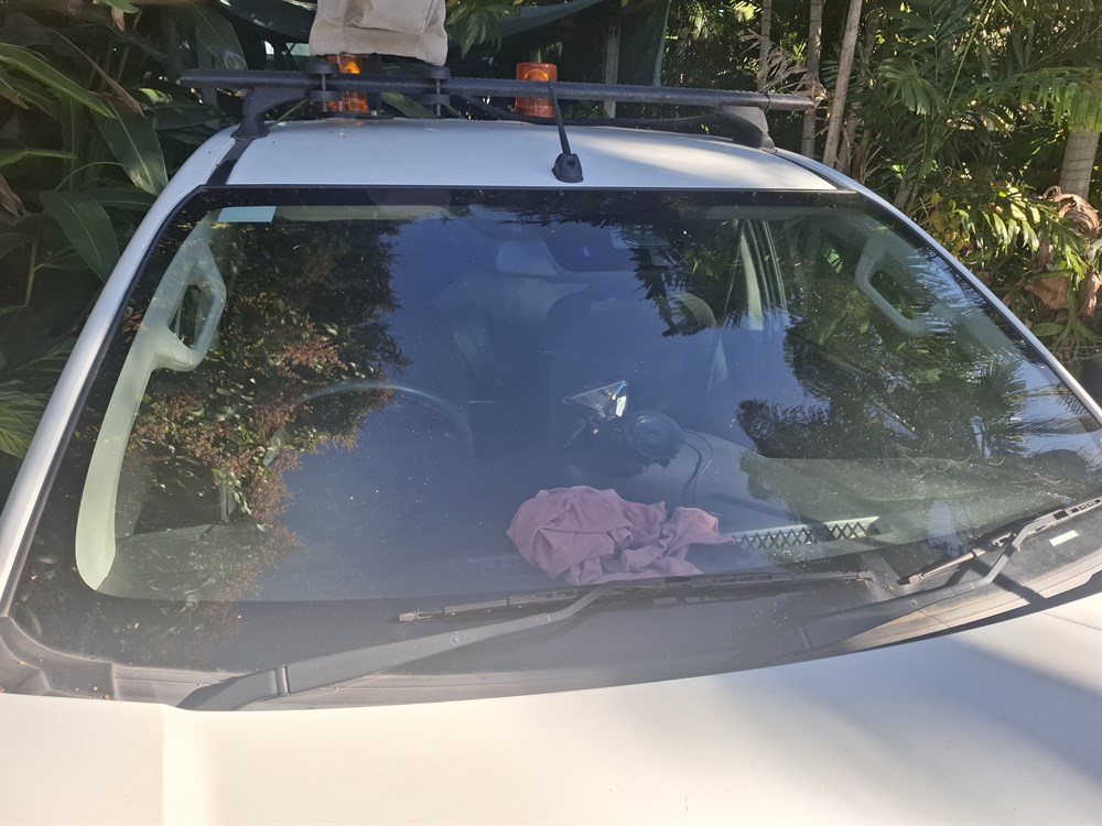 Looks like a normal windscreen to me, with camera in front of rear view mirror. The Triton has a camera mounted on the roof to record road conditions, this camera has a gps on it as
