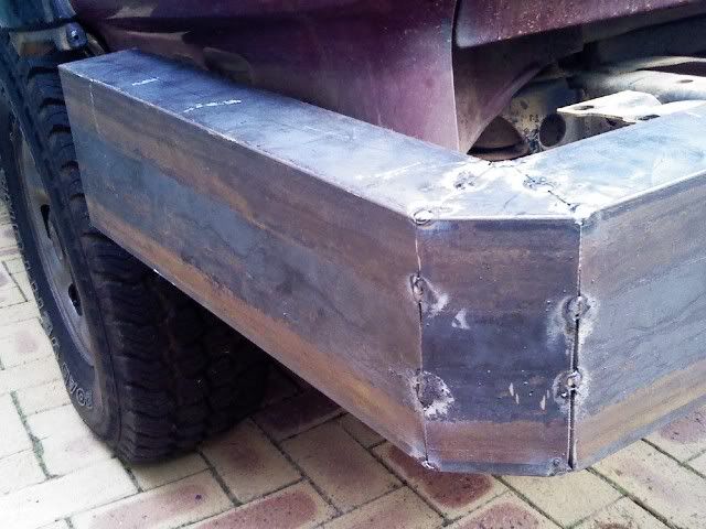 Also - the side returns of the steel bumper need to be built up with some 2 x 1 inch angle iron on top to raise the height at the side to match the body panel moulding's and then roll these back into the main bumper with some half pipe pieces in much the same way that the plastic corners were originally moulded.