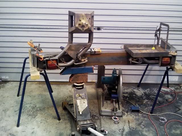 We plan to do this by cutting the two wheel carrier pipes away from their square tube mounting bearing block, with a drop saw - remove 60 mm from each pipe, then re-weld them back into place.
