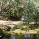 Two, small, level, creekside flats, 1 each side of Snowy Cr bridge, each with BBQ & table. Good swimming hole.