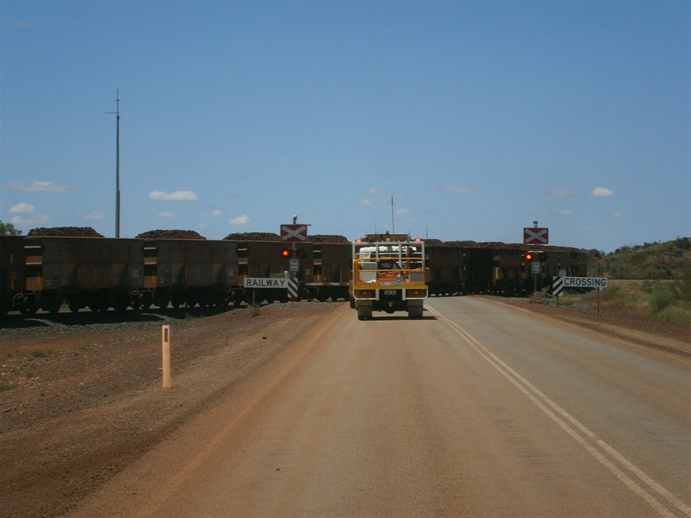 Ore train level crossing.