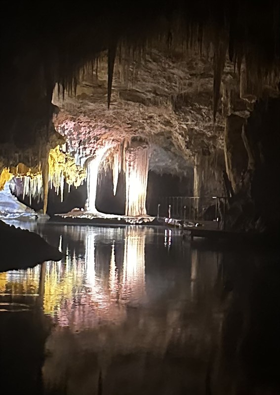 sign that these formations are growing. While seated at the back of the chamber, you can enjoy the unique 'underground ambience'. The guide will change the feature lighting within the