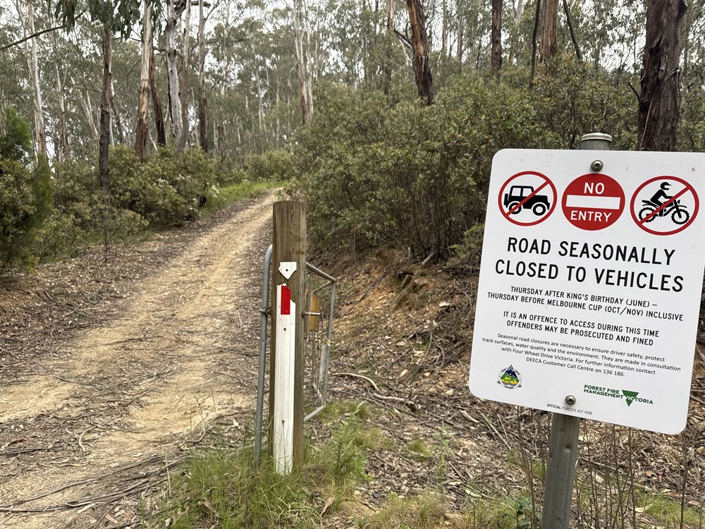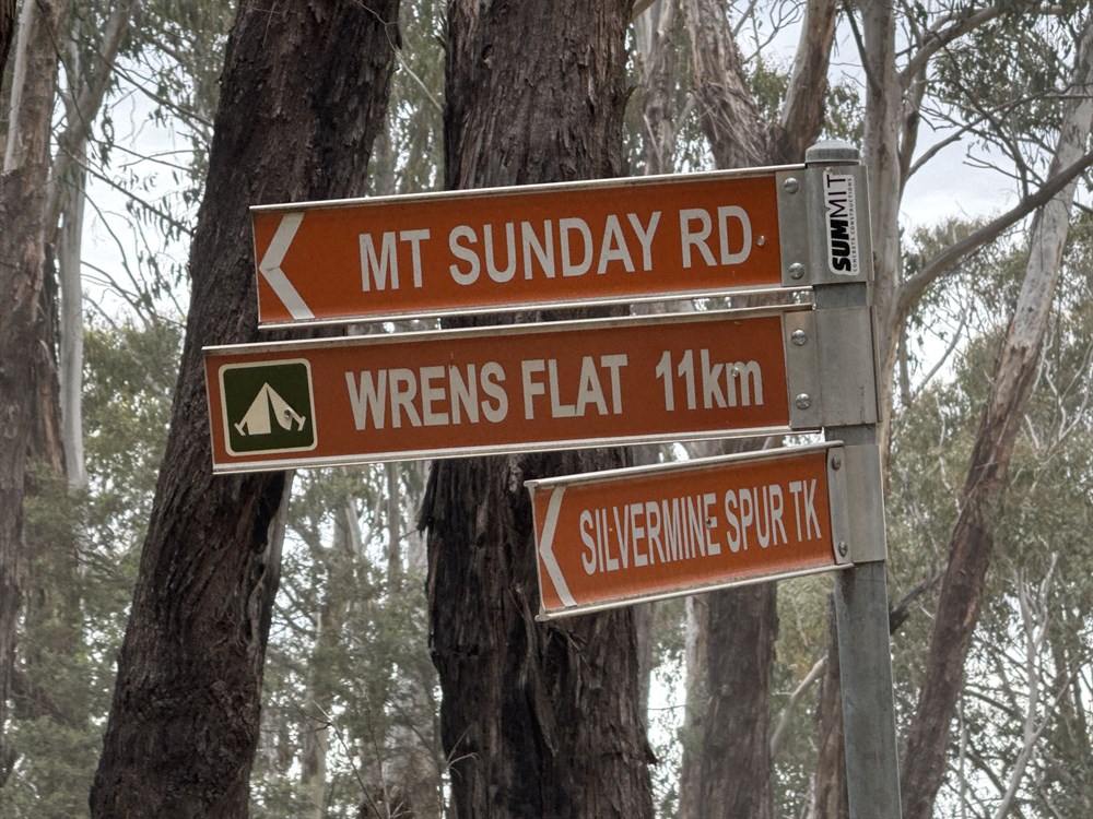 Distance from Heyfield Jamieson Rd & Mt Sunday Tk & Silvermine Spur Tk 24.25km NE