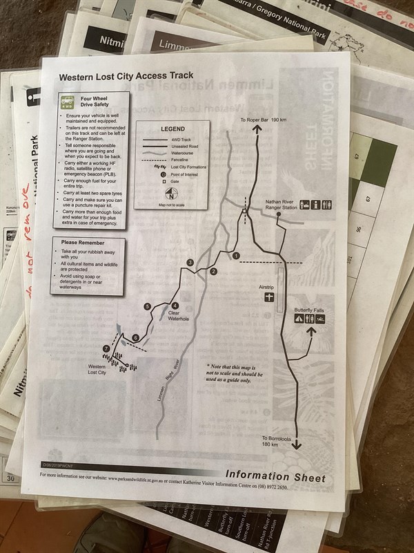 Lost City is in Limmen Nat Pk. Access is by 4WD only, trailers and vans prohibited. These formations are at the end of a 28 km track which may not be open until June in many years. The pillars are eroded remnants of