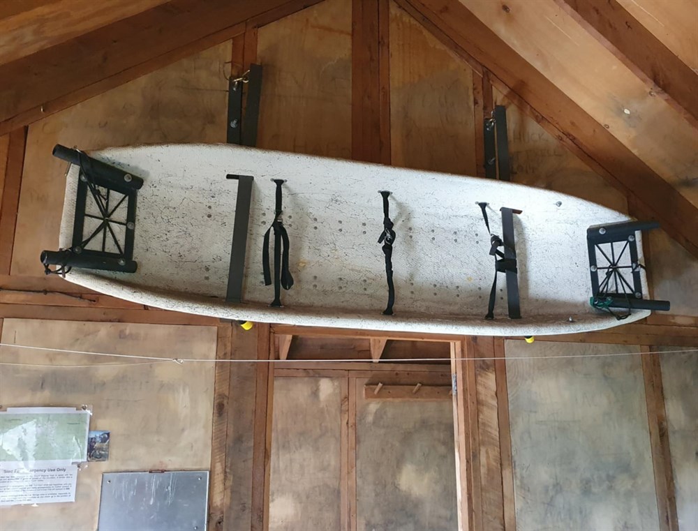 Bogong. The hut is for emergency purposes and was built in 2005 to replace the old one that was destroyed by fire in 2003.It contains emergency medical equipment and other supplies, a sled and a small hand driven 5v generator with USB outlets for charging phones etc.Near