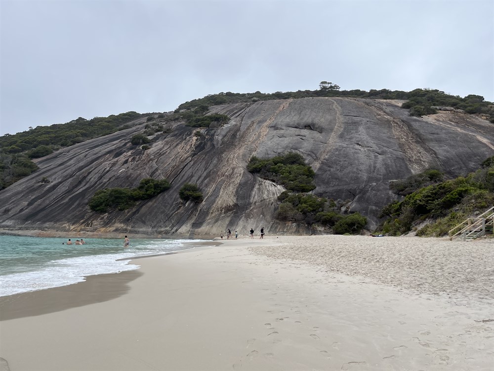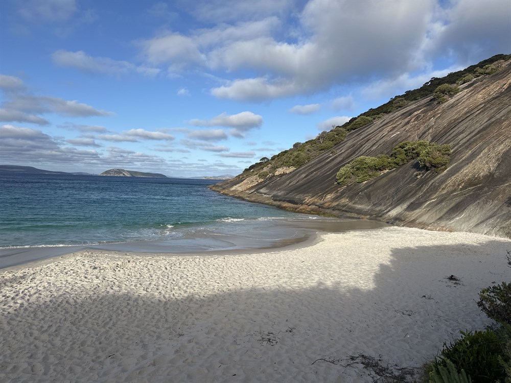 water and virgin white sand but what is less usual about this WA beach is that it is bounded by spectacular