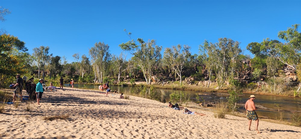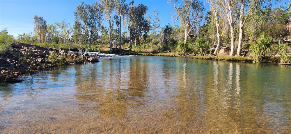 Beautiful Gorge on Mt Elizabeth Station. Day use with access fee. Swimming available earlier in dry season (as may dry out later in season). Access by high clearance 4wd only. Track may be closed due to seasonal damage - check with station. Not as spectacular as nearby Wunnamurra gorge, but easier to access.Station passes are available at the Mt Elizabeth