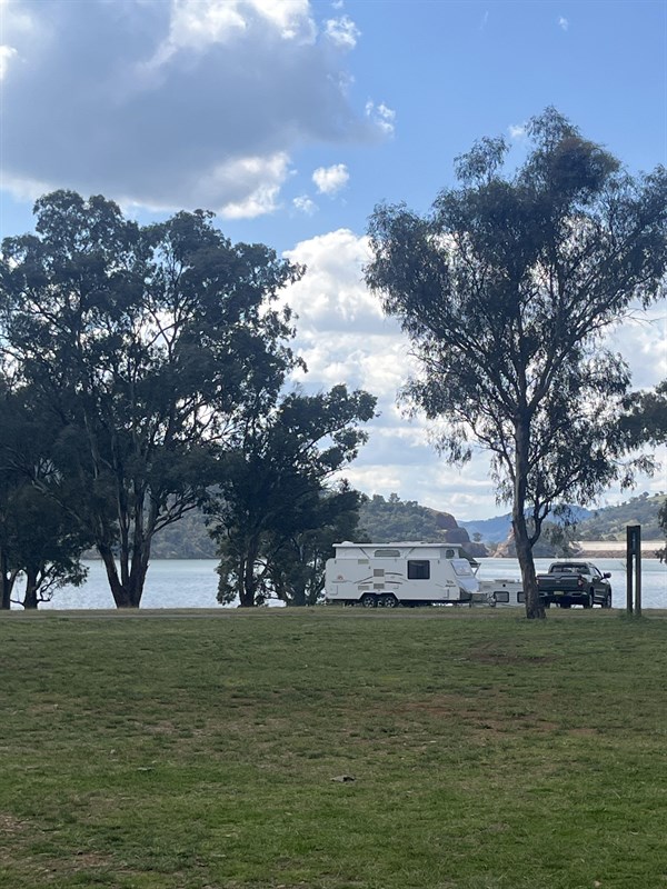 park for $5 per car. Pay cash into honesty box. Sites are on the lake foreshore and facilities include $1 for 4 minute showers,