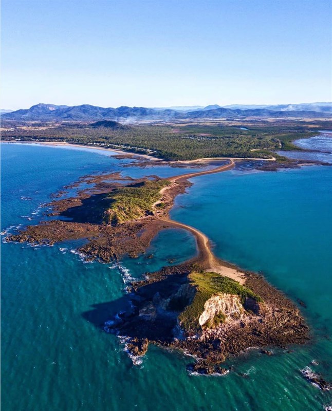 Only possible on low tide, leave the shore at Finlaysons Point and follow the thin isthmus sandbar out to both islands - 4km return. Newry Islands.