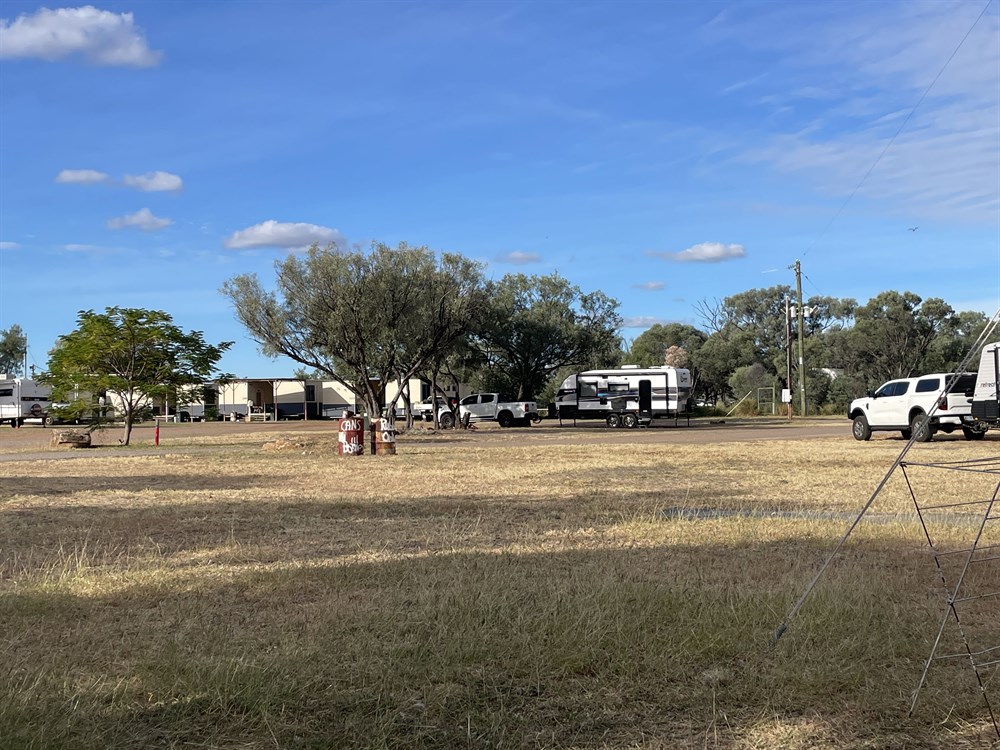 outback caravan park operated by the roadhouse. No need to book. Campfires permitted. Powered and unpowered sites and drive through sites with