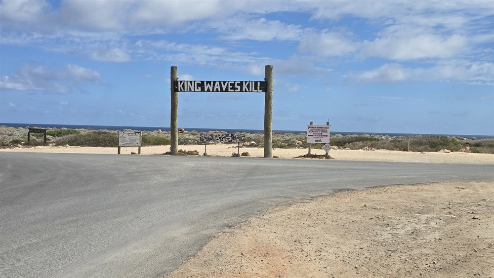 Carnarvon on a bitumen road. Powerful ocean swells force