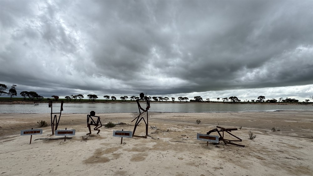 Stretch the legs and view the nearby statues.The Lake known locally as the Statues lake, is also a special place. At various times of the year it turns a brilliant yellow/green as a result of the formation of algae. It reputedly commonly happens around November. Statue Lake is located 10km west of Kondinin on the