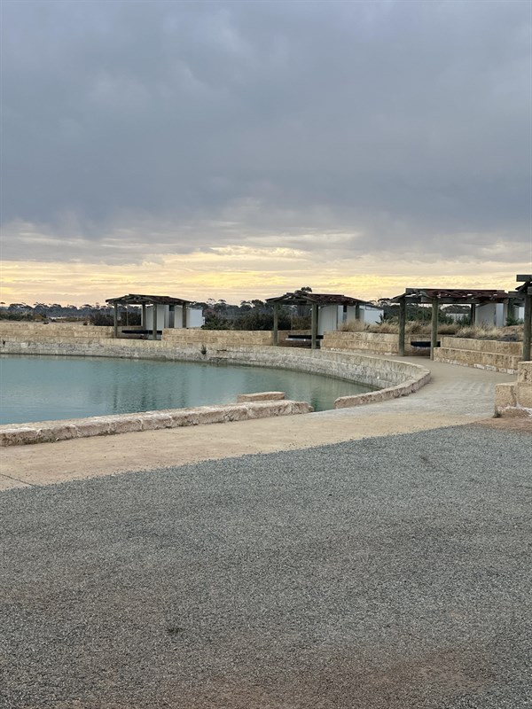 Hyden sunset in your private courtyard or floating in the amazing salt pond whose buoyancy and therapeutic properties are greater than those of the Dead Sea.Located only 1km from the iconic