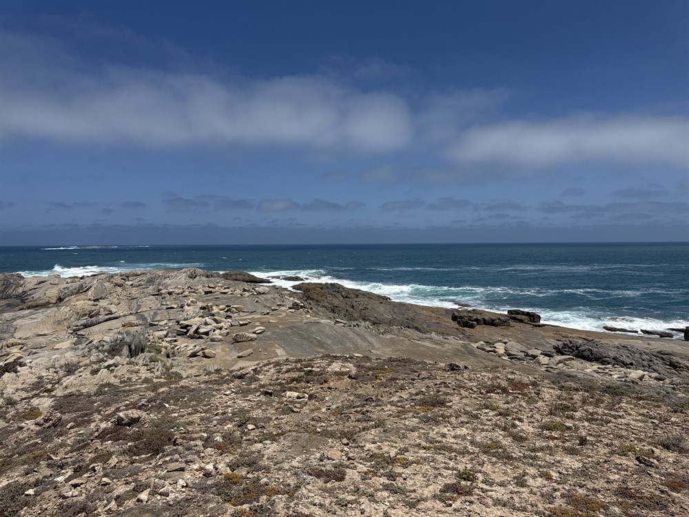 The headland has a meta-sedimentary basement, capped by calcarenite and 50m clifftop dunes. There are no beaches along the 3km rocky eastern foreshore of the point.