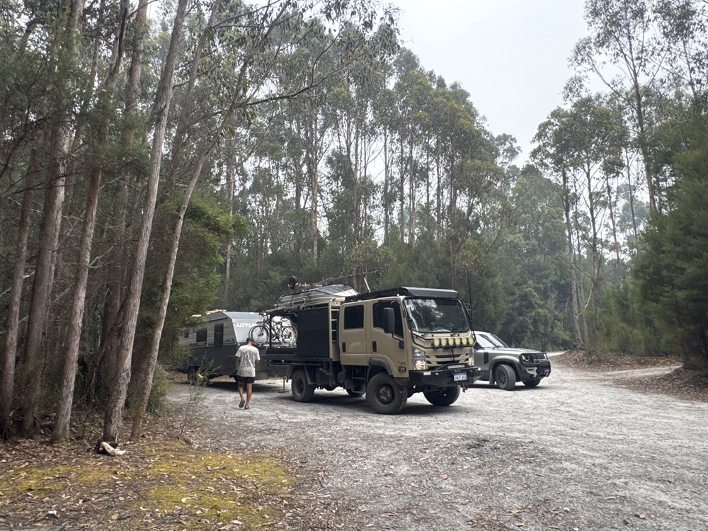 This is an area designed for full self contained RV visitors in motorhomes/caravans. If you are not self-contained please use other campgrounds. Sites are single vehicle bays tucked up into the forest with one open area at entrance designed for large rigs. The area is normally very quiet despite being accessible off a main road.