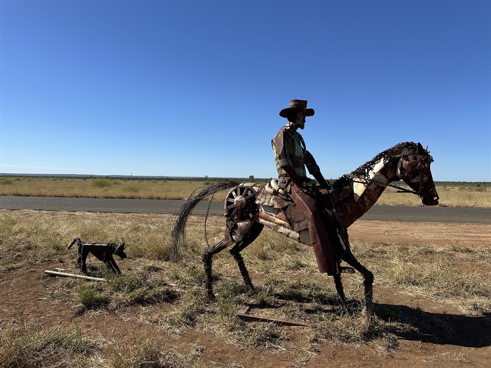 Distance from Harry Redford and his dog sculpture 79.45km S