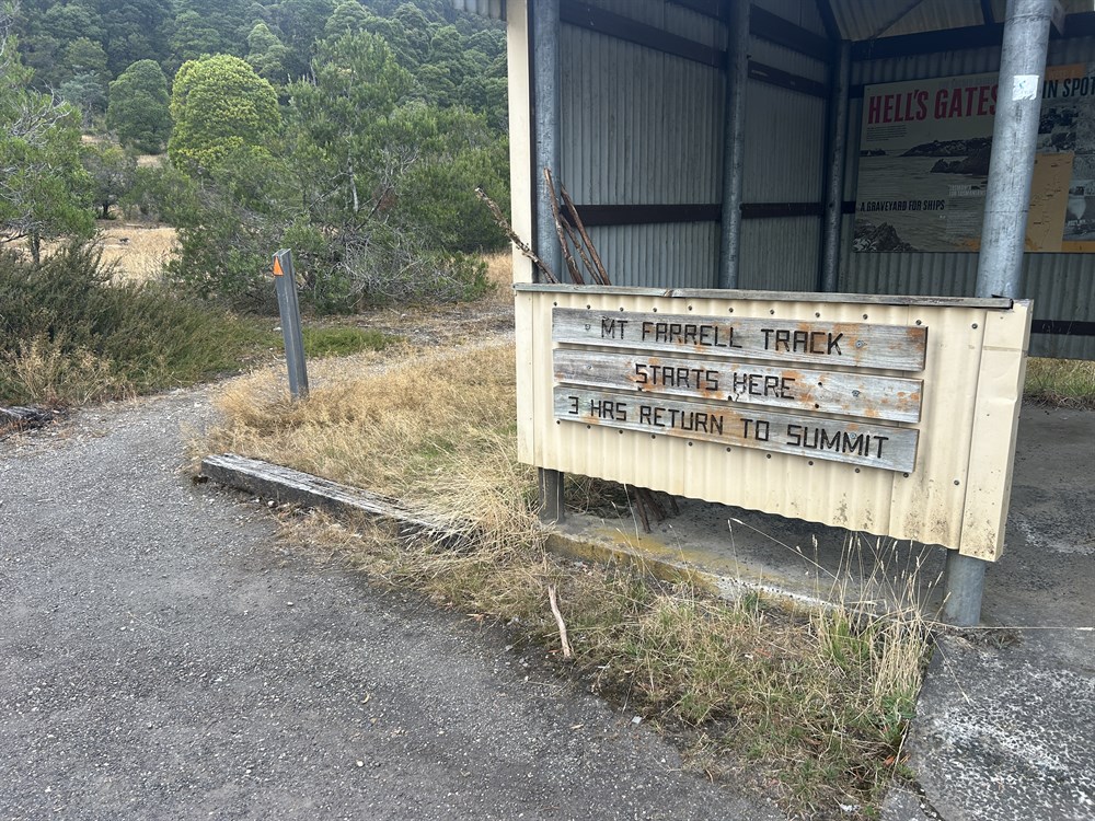 Distance from Mount Farrell Trailhead 14.4km SW