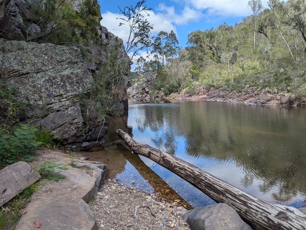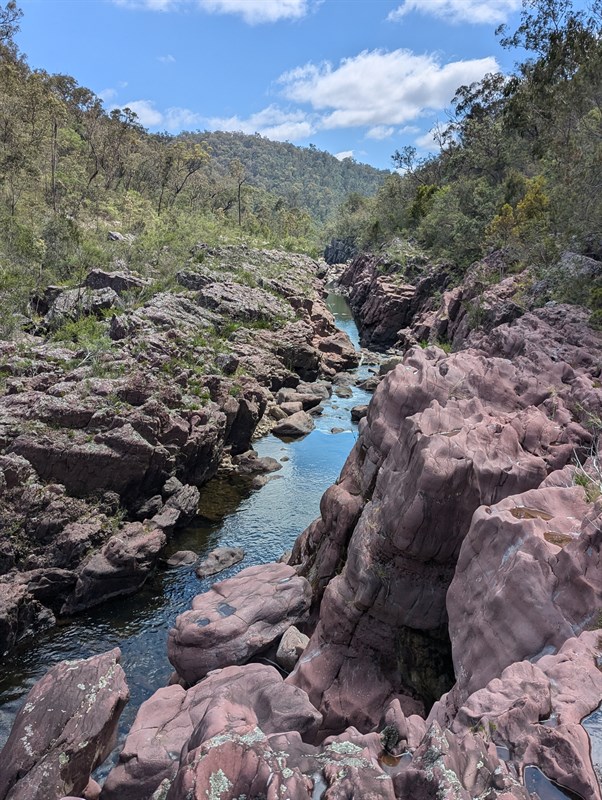 Continue downhill & turn right to walk 800m along the rocky edge of the small gorge & peer down to the river below.