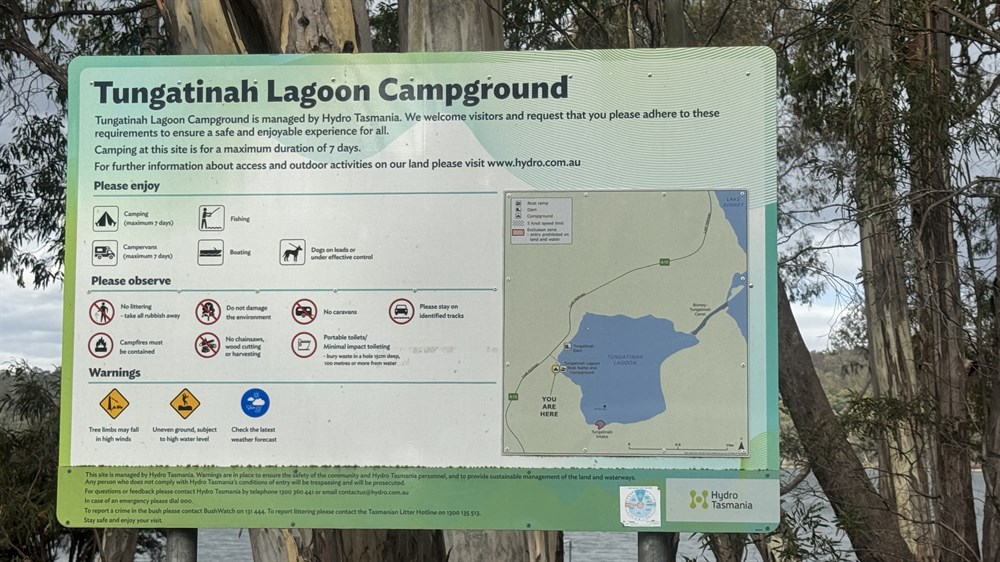 Distance from Tungatinah Lagoon Campground 2.81km S