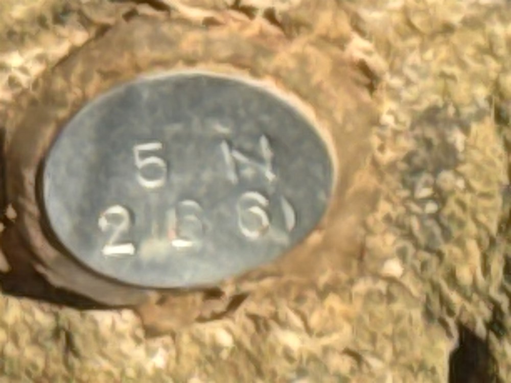 Rockhole right beside the road on north side. A couple of small rocks on the side of the track mark it, although it is easy to see. Small identification disc attached to top “5N 266”