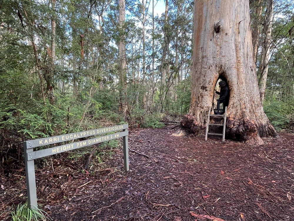 Karri Valley Resort. A scenic walk through the Karri forest to an interesting site, especially for family groups. Some steep gravel sections along the trail. For those more energetic, a loop walk around the lake and Beedalup Falls, is also an option.