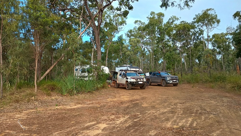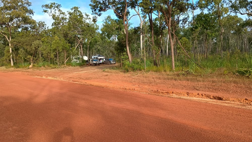 Flat area on southern side of the road. If travelling in a group would fit 4 offroad vans with ease. Area is flat and separated from the road by a small amount of trees and scrub. About 1.2klm away from the start of the Fruitbat Falls Track, so good overnighter if visiting the falls.