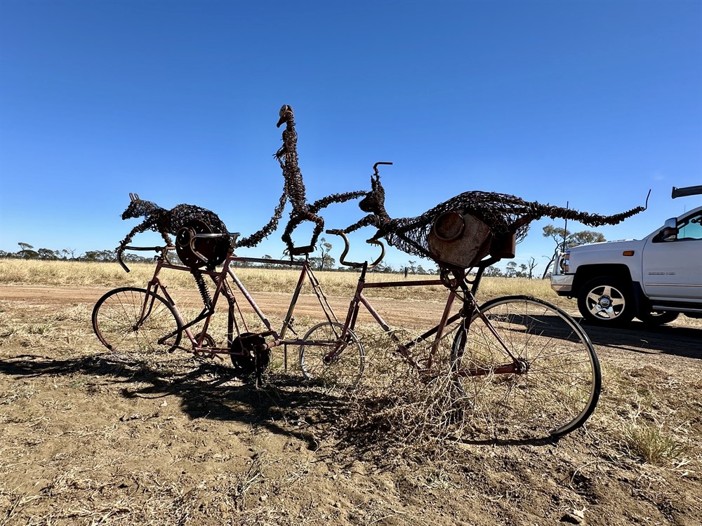 Distance from Goanna and Kangaroos Sculpture 67.43km S