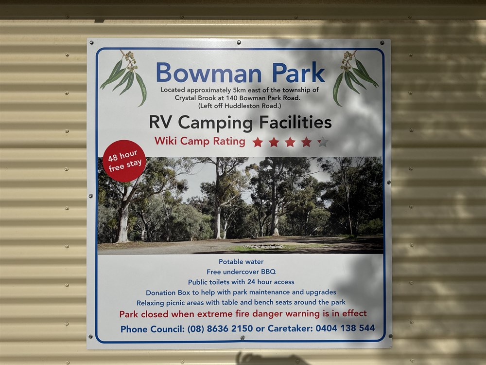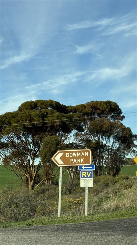 Distance from Bowman Park RV Stop (donation) 48.65km S