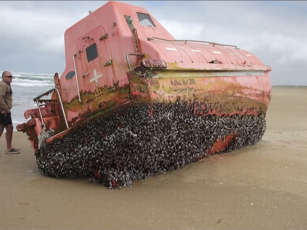 MS Oliva Valetta life boat found washed up on a Coorong Beach in the Southeast South Australia after parting ways from the ship that ran a ground on the Nightingale Islands South Pacific between South Africa and South America , it was a drift for 99 weeks. ABC News in Australia reported on 6th February 2013 that the lifeboat from the wrecked bulk carrier MS Oliva was washed up on a beach in South Australia.The lifeboat was found by Nick Balmer when he went fishing and reported that it was in good condition after its long journey.It was removed from