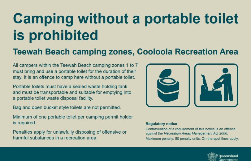 Camp fires prohibited. Fully self-contained cooking and heating appliances that use gas or manufactured fuel only (heat beads, briquettes) are permitted. Appliances that are not fully self-contained, such as braziers, are not permitted.Vehicle access permits required. 4WD access only. Located at the northern end of Teewah Beach, this