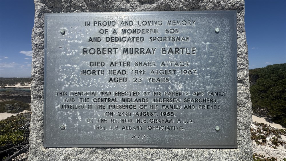 memorial. Bob Bartle was killed by a tiger shark while spearfishing in 1967.