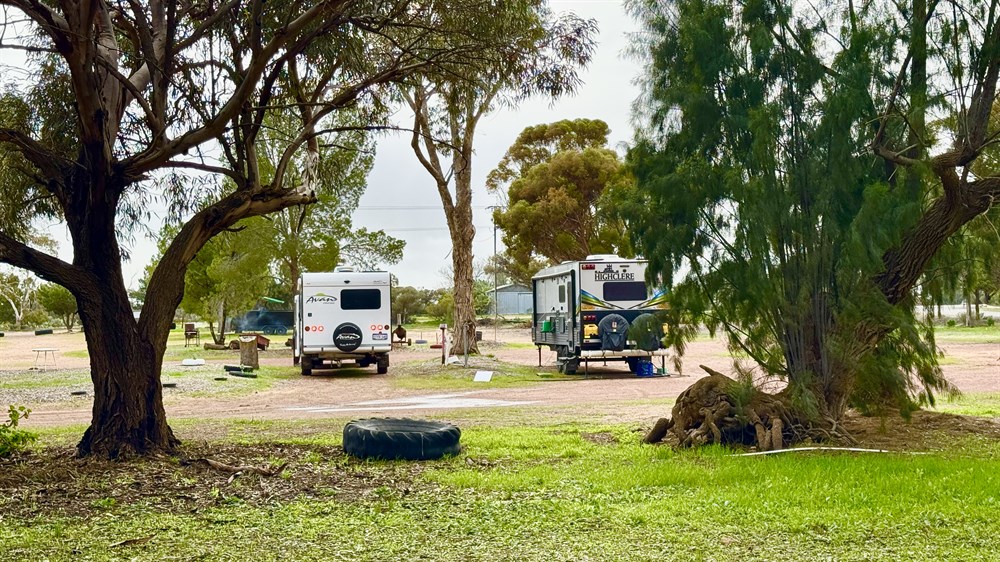 Park out the back. Varying rates for powered and unpowered, swag, tents and caravans.