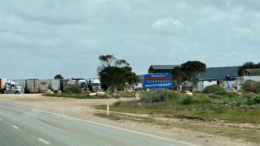 Eucla and 115km east of Madura. The roadhouse is located on the northern side of the Eyre Hwy and is open 5:30am - midnight 7 days a week. Take away/restaurant food and bar. Bar hours 11am - midnight 7 days a week. Fuel here is renown for being the cheapest along the Nullarbor but give them a call and ask Bruce for today's price.