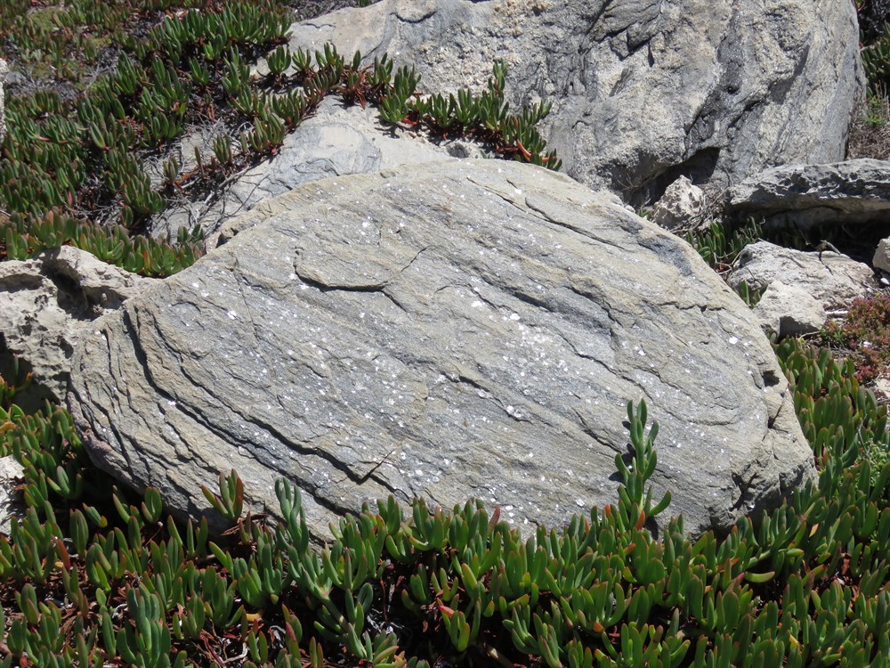 cliff faces. Outcrops of the metamorphic rock named schist have glistening mica flakes and contorted layers making the point a photogenic spot.