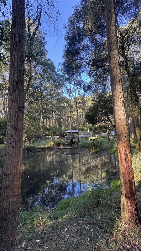 water). Lovely forest trees and a swamp attract wildlife. Sites 1-7 are suitable for tents only, while sites 8-13 cater for camper trailers and caravans (very tight). All campsites are unpowered.Campground facilities include non-flush