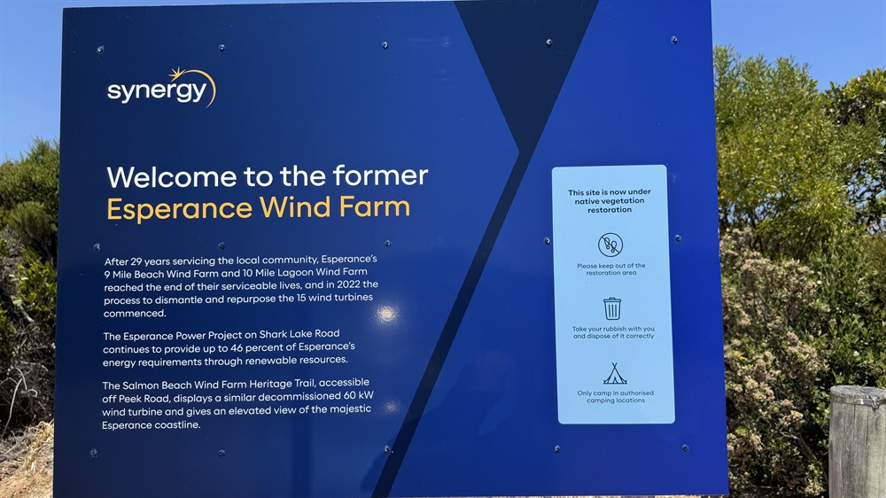 Nine Mile Beach Wind Farm, built with the financial assistance of the Australian Greenhouse Office through the Western Australian Sustainable Energy Development Office, adds more wind energy to the local electrical system.Together the