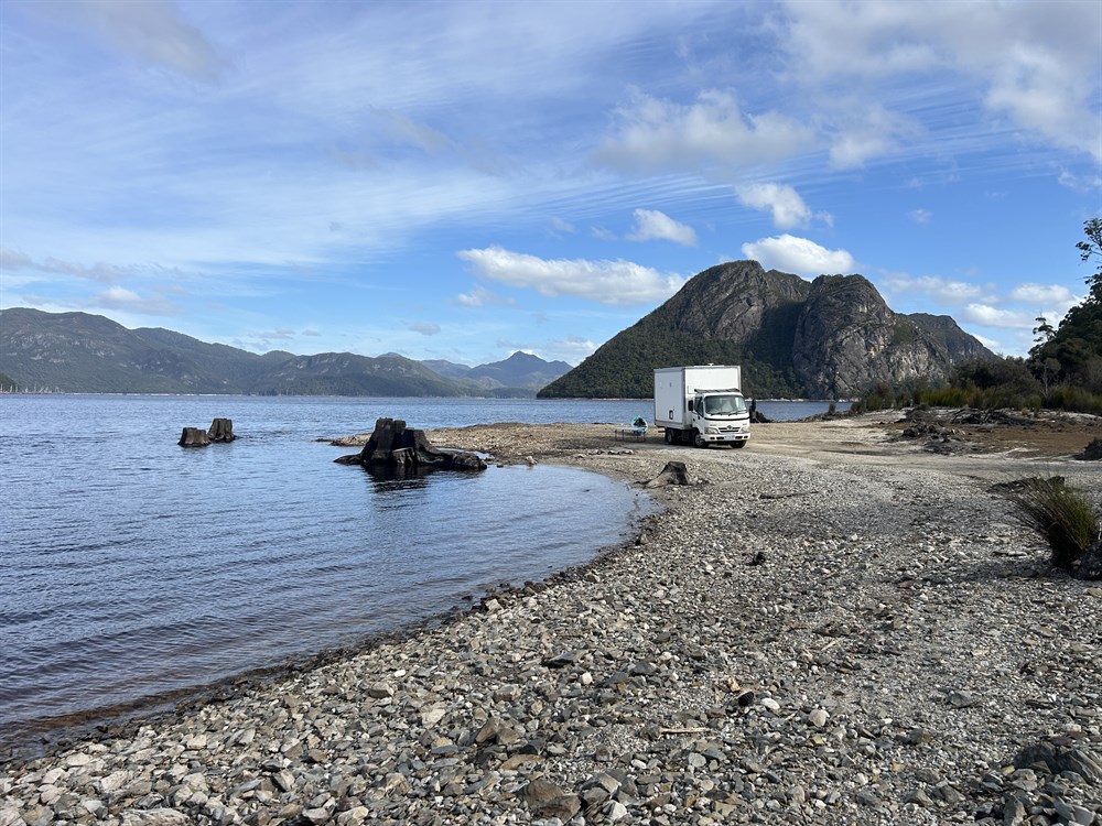 A second downhill road to the boat area to the left has room on two levels to suit very small setups although the ground here is mostly unlevel.