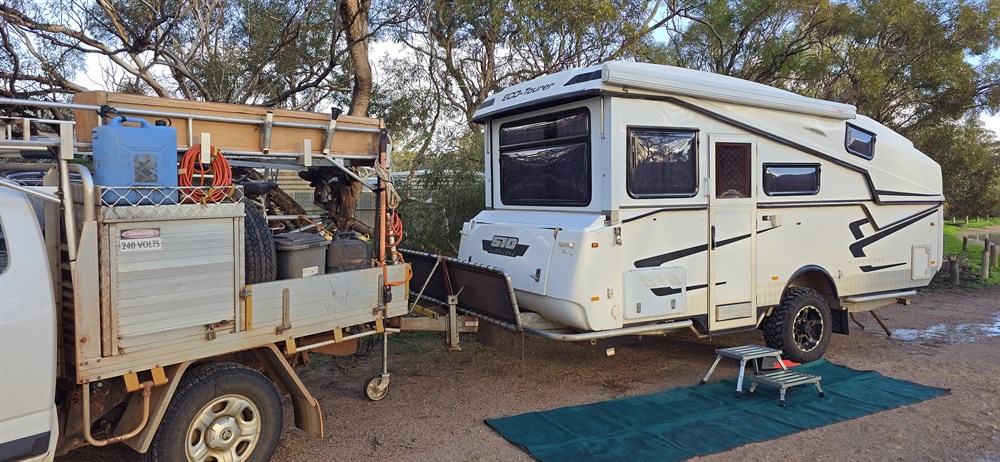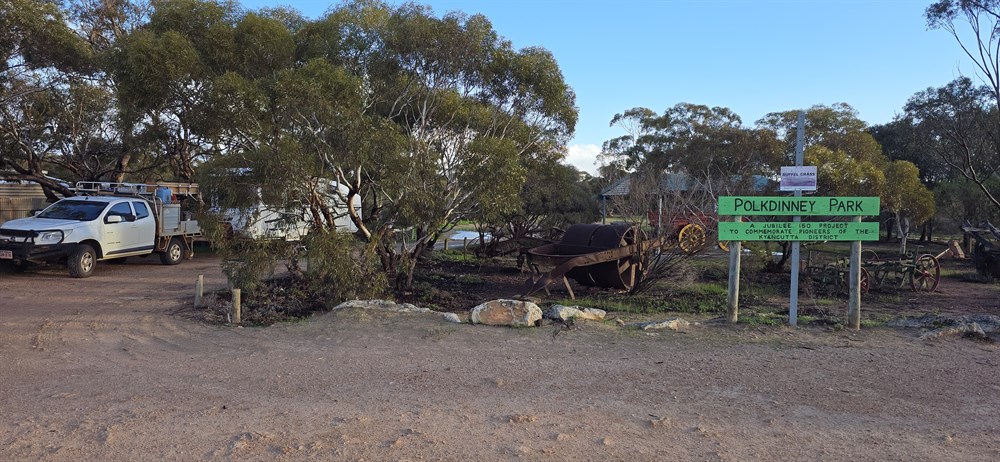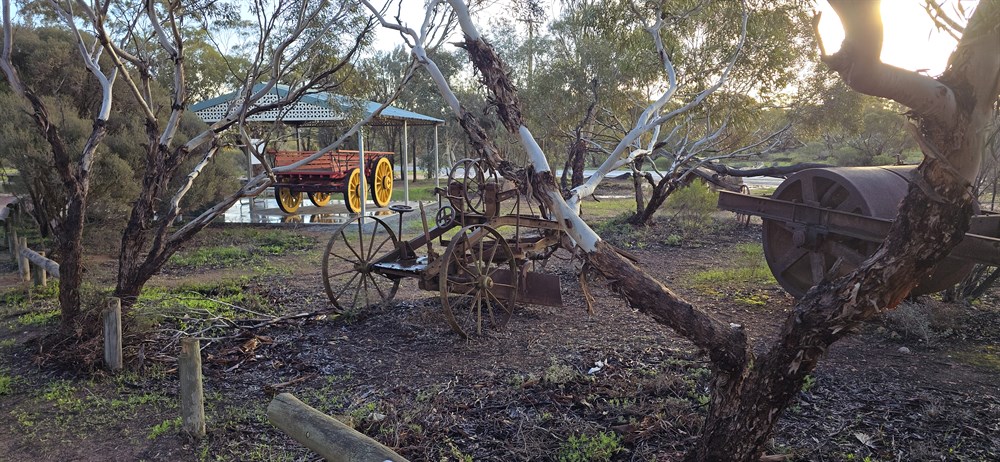 Memorial park in Kyancutta with historic relics to explore whilst having a rest break. Table and