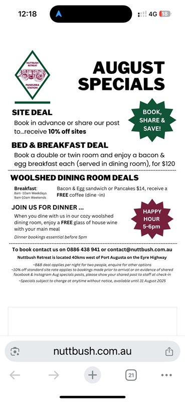 camping and caravanning to luxuriously restored Shearers Quarters. Clean amenities and good meals at onsite restaurant. Happy hour at bar. Friendly and clean.Enjoy staying in outback accommodation at a station that produces some of the best wool in South Australia.