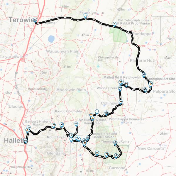 This drive may be only short in distance, but is big in features, so do not under estimate the time taken to do this very enjoyable and historic drive. From the rolling hills of Mount Bryan to crossing that invisible barrier of Goyder’s Line of Rainfall, this will be a very rewarding drive and give you a chance to see what lies over the ranges as you travel down the Barrier Highway. Travelling during early spring can be very rewarding with the contrasting countryside - from various crops growing, through to wilds flowers further east in the trip.